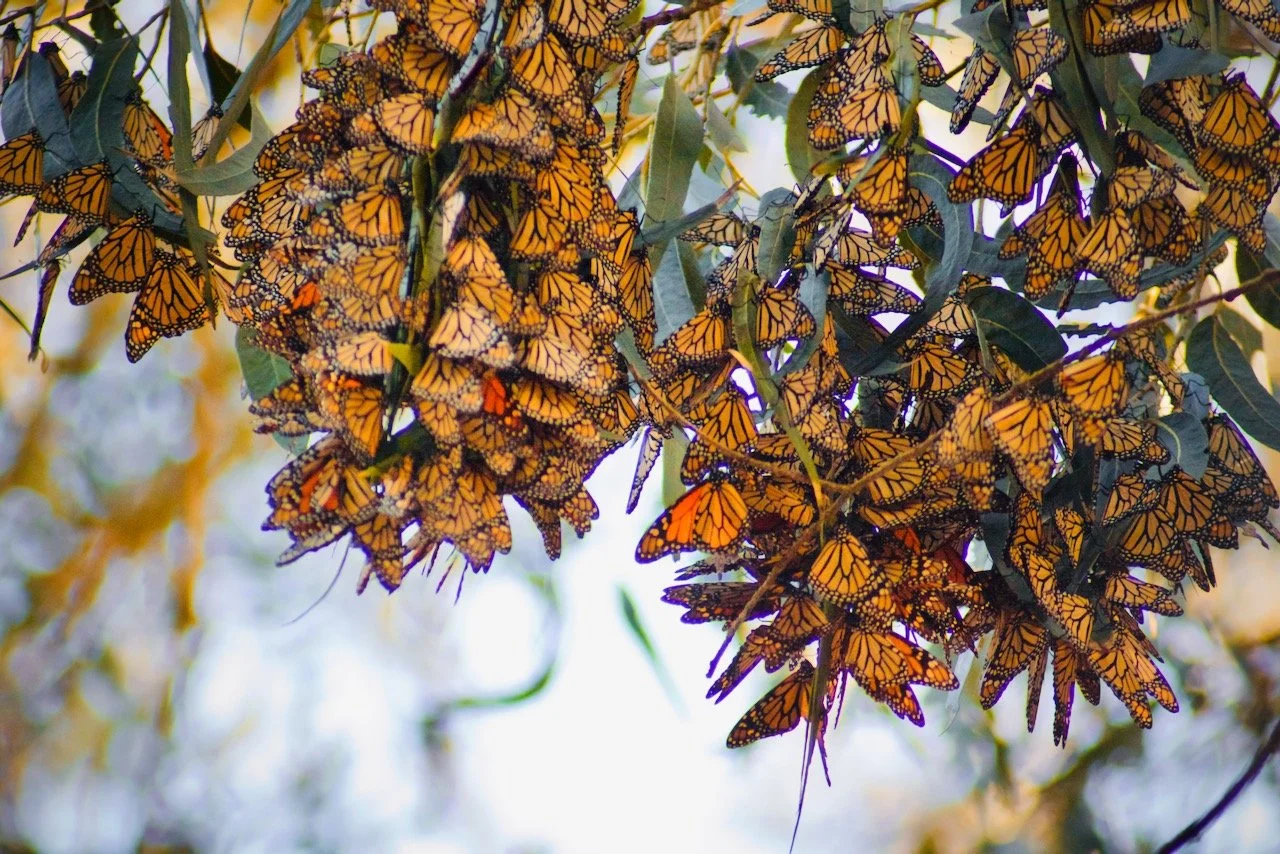 Overwintering Sites Nearby: Pacific Grove and Santa Cruz, but they do pause in sheltered coastal groves, including eucalyptus and cypress trees in Half Moon Bay and the midcoast..